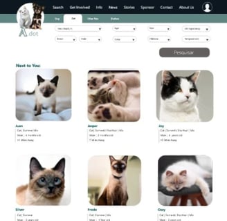 Matching Inteligente: Desenvolvemos um sistema de filtros que vai além das características físicas, permitindo busca por temperamento, necessidades especiais e compatibilidade comportamental. Este sistema centraliza a experiência de adoção no que realmente importa: a conexão genuína entre humano e animal. A implementação de um algoritmo de compatibilidade que cruza preferências do usuário com características do pet, sugerindo combinações promissoras, também foi considerado.