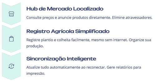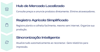 As decisões estratégicas para o escopo do Produto Mínimo Viável (MVP) focam em três pilares centrais: a criação de um hub de mercado localizado para solucionar dores de comercialização e acesso a informações de preço; a implementação de um registro agrícola simplificado que facilite a gestão básica da propriedade com ênfase na usabilidade e entrada de dados intuitiva; e o desenvolvimento de uma capacidade offline robusta com sincronização inteligente, assegurando a funcionalidade da ferramenta em campo, mesmo com conexões de internet instáveis ou inexistentes.
